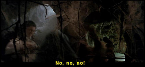 [Hoggle] Don't kiss me! Don't kiss me! [Hoggle] No, no, no! [Sarah] Hoggle, hold on. |