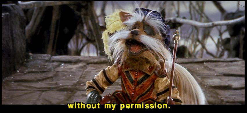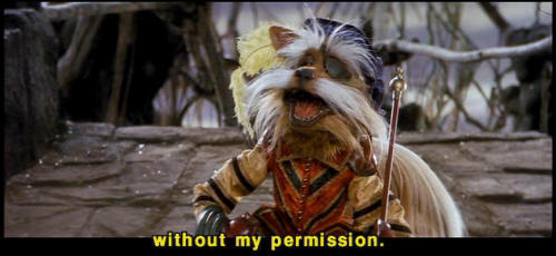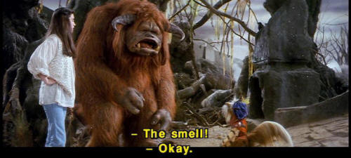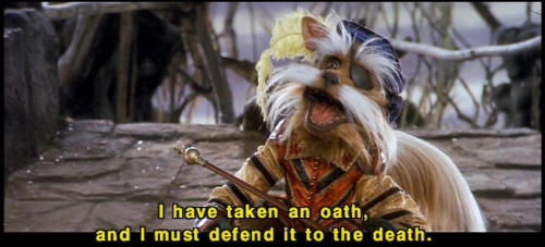 [Sir Didymus] I have taken an oath, and I must defend it to the death. [Ludo] The smell! [Sarah] Okay. [Sarah] Let's handle this thing logically. What exactly have you sworn? [Sir Didymus] I have sworn with my lifeblood no one shall pass this way ... [Sir Didymus] without my permission. [Sarah] Well, may we have your permission? [Sir Didymus] Well, I -- |