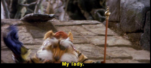 [Sir Didymus] Yes. [Sarah] Thank you, noble sir. [Sir Didymus] My lady. [Sarah] Uh-oh. [Sir Didymus] Have no fear, sweet lady. [Sir Didymus] This bridge has lasted for a thousand years. |