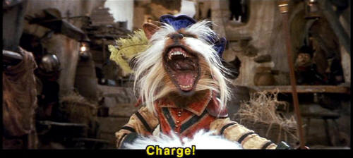 [Goblin] I hit something, yes? No? [Sarah] We've got to find Didymus. [Sarah] Down this way. [Sir Didymus] Charge! |