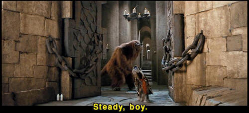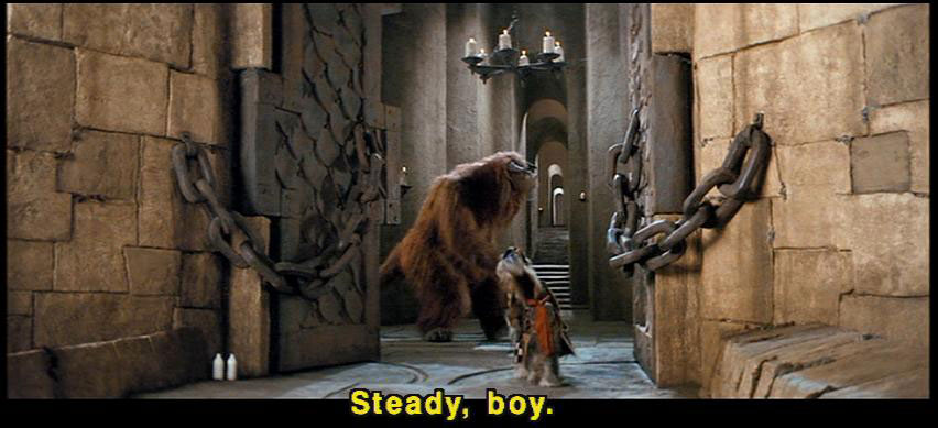 [Sir Didymus] Hi-ho, Silver! [Sir Didymus] Whoa, boy. Whoa, big fella. [Sarah] This way. [Sir Didymus] Steady, boy. [Sir Didymus] Ah, yes. Up we go. Up, up. [Sir Didymus] Come on. Good boy. [Sir Didymus] Come on. |