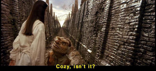 [Hoggle] Cozy, isn't it? [Hoggle] Now would you go left or right? [Sarah] They both look the same [Hoggle] Well, you're not gonna get very far. |