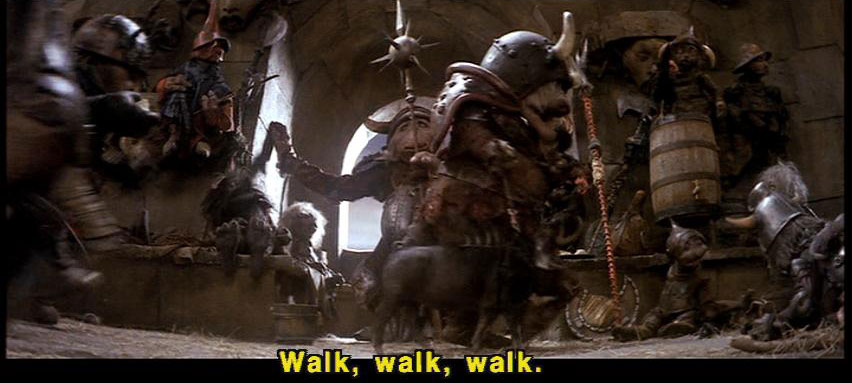 [Goblin] Give me back this! Go on, get off me. [Goblin] Stay out of the way. What are you talking about? [Goblin] Walk, walk, walk. |