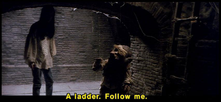 [Hoggle] You sure got his attention. [Hoggle] Ah, this is what we need. [Hoggle] A ladder. Follow me. [Sarah] How can I trust you now that I know you were taking me back to the beginning? [Hoggle] I wasn't. |