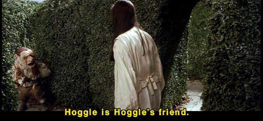 [Hoggle] No, I'm not. Hoggle ain't no one's friend. [Hoggle] He looks after himself, like everyone. [Hoggle] Hoggle is Hoggle's friend. [Sarah] Hoggle, you coward! [Sarah] Well, I'm not afraid. [Sarah] Things aren't always what they seem in this place. [Goblin] Try on this for size, you big yeti! [Goblin] We've got you now, fuzz ball! |