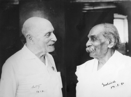 André and Nolini _______________ Notes: [1] Mother India, January 1983, p. 41 Part E In 1956, André established the Sri Aurobindo Study Centre; this organization sent teaching materials, class textbooks and other objects to the Ashram School. However, this organization did not increase in size. Janine, in her letter to Nirodbaran, explained the reason: “In the statement approved by the Mother about the textbooks in the Centre of Studies, we read: ‘The role of the Centre is to serve as a link between the Ashram and the French people, etc.’ The link functions in such a manner that the Centre could never have more than a hundred members: as soon as that number was reached, some of them decided to settle permanently in Pondicherry…” [1] In the same letter, Janine writes about her father: “His concern was to extend all his efforts to the service of the Mother in France in order to realise the vast projects that she had conceived for this country. I know how attached he was to the Ashram, so much so that one day he asked the Mother (in 1955-60, probably) for permission to settle definitively in the Ashram. The Mother answered: “No such question! I need you in France.” If André has done anything for the Ashram, it is work more of a general nature which the Mother had assigned to him.” [2] However, the Mother did not quite always appreciate the methods undertaken by André to spread the message of Sri Aurobindo’s teachings. For instance, when Pavitra informed the Mother (on 25 April 1961) that André had been bitten by the “propaganda bug” (as he had preached that the goal of the Sri Aurobindo Study Centre was to steer people towards Pondicherry and the Mother), she had exclaimed: “Ooh!... OH! How dreadful. How dreadful. He too!” [3] André’s name would be mentioned several times in the Agenda in various circumstances. Let’s quote a few of them. On 15 February 1963, we find the Mother saying (regarding a passage from the Agenda at the time of her first “great turning point”, which she wanted to show to one of the persons of her entourage in order to make him understand her work): “I had asked Sujata [Nahar] for two copies, but then I realized it wasn’t at all necessary. When I told you I would give it to André for him to read, and when André came, I showed him one or two of the latest [Agenda conversations] typed by Sujata—and soon lost any desire.” [4] On 3 June 1967, the Mother said: “André writes that he received in Paris people who asked for information on Auroville. He answered with a letter, and when he was about to send it, he thought, ‘Maybe I’d better show it to the Mother, after all.’ He sent his letter—and well he did! Those people asked him the conditions to be admitted to Auroville; he replies, ‘Oh, that hasn’t been decided yet!’ So I’ve prepared a little note; because he just says, ‘Oh, nothing has been decided, we’ll see,’ as though there weren’t any Aurovilians yet. I don’t know if he did it purposely to discourage people; at any rate it’s not good to write like that… I know what he based himself on: I had told him that, naturally, from the material point of view, the CONDITIONS OF LIFE in Auroville were not arbitrarily fixed in advance.” [5] On 20 September 1969, the Mother said: “André told me that when he has some pain, he just has to put his hand and concentrate—and it goes away. As for me, I’ve been doing it for… (I was going to say for centuries!), even when I was small I used to do it. I always found it something quite natural.” [6] On 22 July 1972, there was a discussion between the Mother, André and Satprem on the fact that SABDA was not giving Satprem any details regarding the sales of his books. Similar charges arose regarding the printing and distribution of Sri Aurobindo’s books as well. During the course of the conversations, the Mother remarked (in André’s presence): “But André isn’t combative.” André agreed that he wasn’t so and explained: “I try to see through their eyes, and then I don’t know who’s right any more.” He said to the Mother: “I’ll tell frankly what bothers me. What bothers me is that I know from experience that you’re always right because you always see things from a higher plane than we. Also I know from experience that even if at the time I feel you say something that doesn’t match my own thinking, well, you’re still right. And that’s why I have a lot of trouble being ‘combative.’” [7] But André had become an important and integral figure in the Ashram and he helped the members of the Ashram in whatever ways were possible for him. When the associate editor of Mother India, the Ashram magazine, Soli Albless had planned to go to a philosophical conference at Brussels, a “hitch” arose; André on the Mother’s suggestion took Soli’s papers with him and represented him at the conference. He worked with Pavitra, and Nirodbaran describes them as “complementary souls.” Towards the end of his life, when Pavitra was unable to walk freely, he would go to the Mother’s room with André’s support. More than once he was seen coming downstairs after visiting the Mother leaning on André’s shoulders. In fact, Pavitra wanted André to take up his post and work at the Sri Aurobindo International Centre of Education. In May 1969, when the condition of his health grew worse, Pavitra eagerly awaited the arrival of André (who was in France) as he did not want to leave his body before André’s coming. The Mother too said in her talks (dated 17 May 1969): “But I had been forewarned (long ago) that his [Pavitra] inner being was waiting for André to return before it would leave.” André arrived at Pondicherry on 13 May and just before his coming, Pavitra fell down. On the 15th, he had his lunch with André and then, immediately after lunch, he asked André to leave as he did not want to show him the extreme diffic