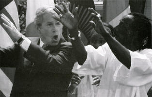 THE PROSECUTION OF GEORGE W. BUSH FOR MURDER A Photographic Brief A NOTE FROM VINCENT BUGLIOSI In looking at the photos in this section, which are intended to bring life to the bare words in Chapter 3, the "Prologue to the Prosecution of George W. Bush for Murder," let me share with you some thoughts beyond the obvious you may or may not have had. One is that the photographs in the section do not even remotely begin to do justice to what cannot be shown or captured under any circumstance -- the unspeakable horror of what has happened in Iraq. Indeed, even if there were 10,000 photos, they would fall far short in this regard. They do not and cannot convey the fact that each victim was once a vibrant human being with hopes and dreams. And because of one man, the man in the title of this book, they are no more. Likewise, the photos of the survivors catch but a fleeting moment in a lifetime of nightmares they will have over the horrible, violent deaths of their loved ones. So while it is true that a picture is worth a thousand words, I am suffused with the sense of stark inadequacy in looking at these photos, which provide but a mere glimpse of the torment, devastation, and anguish caused by this president and his war in Iraq. As for the photos of Bush himself, the prologue proves beyond all reasonable doubt that throughout the sea of blood and the screams and cries of men, women, and children, even babies, coming out of the hell on earth he created in Iraq, unbelievably, he laughed and joked, had fun, and enjoyed every day of his presidency. I mean, he told us this. I'm going to have "a perfect day," he said. Laura and I had "a fabulous year" and we're "having the time of our life." Bush, in addition to his transcendent criminality, has added a snapshot view of extreme grossness and vulgarian audacity to this otherwise sacred selection of photos.