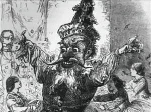 In Thomas Nast: His Period and His Pictures, biographer Albert Bigelow Paine, documents that Nast’s Santa was Pelznickle. But on Christmas Eve, to Protestant and Catholic alike, came the German Santa Claus, Pelze-Nicol, leading a child dressed as the Christkind, and distributing toys and cakes, or switches, according as the parents made report. It was this Pelze-Nicol – a fat, fur-clad, bearded old fellow, at whose hands he doubtless received many benefits – that the boy in later years was to present to us as his conception of the true Santa Claus – a pictorial type which shall lone endure. (Paine, Albert Bigelow. Thomas Nast: His Period and His Pictures. New York: Chelsea House, 1980, p. 6) Santa historian and author, Tony van Renterghem also documents Nast’s Santa Claus was not Saint Nicholas, but the evil Black Pete–the devil.