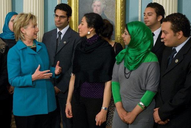 Political Double Talk: Chatting with "Dictators," Mingling with "Dissidents" The Egyptian pro-democracy delegation to the State Department was described by Condoleezza Rice as "The Hope for the Future of Egypt". In May 2009, Hillary Clinton met a delegation of Egyptian dissidents, several of which had met Condoleezza Rice a year earlier. These high level meetings were held a week prior to Obama's visit to Egypt: