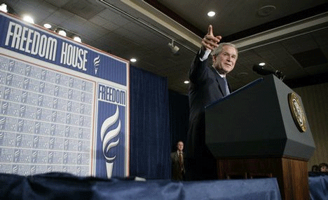 While the US has supported the Mubarak government for the last thirty years, US foundations with ties to the US State department and the Pentagon have actively supported the political opposition including the civil society movement. According to Freedom House: "Egyptian civil society is both vibrant and constrained. There are hundreds of non-governmental organizations devoted to expanding civil and political rights in the country, operating in a highly regulated environment." (Freedom House Press Releases). In a bitter irony, Washington supports the Mubarak dictatorship, including its atrocities, while also backing and financing its detractors, through the activities of FH, the NED, among others. Under the auspices of Freedom House, Egyptian dissidents and opponents of Hosni Mubarak were received in May 2008 by Condoleezza Rice at the State Department and the US Congress. They also met White House National Security Adviser Stephen Hadley, who was "the principal White House foreign policy adviser" during George W. Bush's second term.