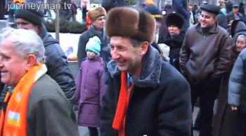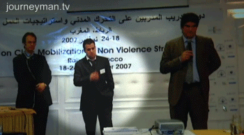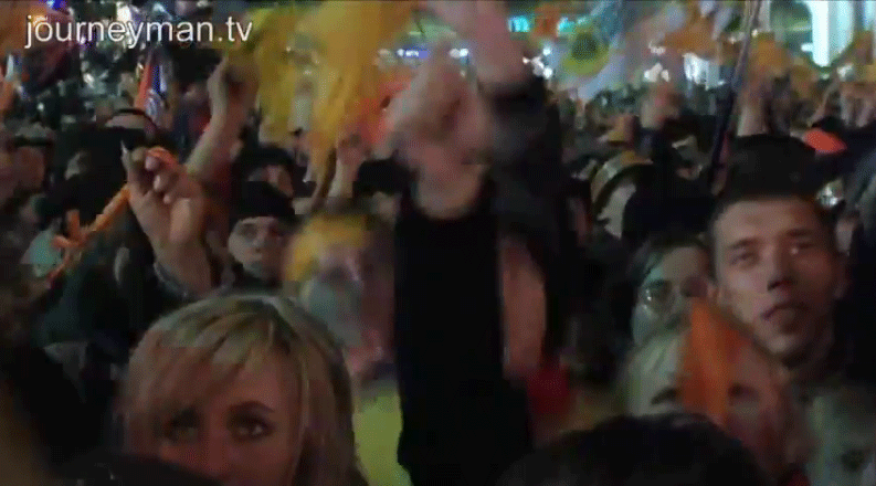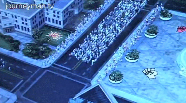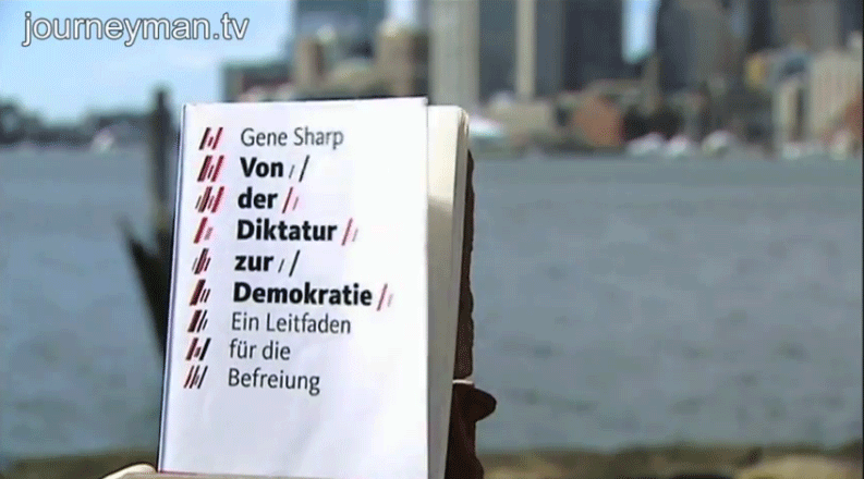 [Narrator] Gene Sharp taught for many years at Harvard University. His work describes various strategies, from hunger strikes to the unmasking of intelligence officials. His assistant, Jamila Raqib, is responsible for distributing Sharp's work. "From Dictatorship to Democracy" has been translated into 34 languages. [Jamila Raqip, Albert Einstein Institute] This booklet is the Arabic version of "From Dictatorship to Democracy," which is one of Gene Sharp's most important and widespread publications. It's been disseminated very, very widely, this Arabic version. So a few years ago, maybe perhaps 2 years ago, an individual had it printed by a publishing house in Beirut. [Narrator] Sharp's guide to revolution is feared by dictators around the world. Venezuela's President Chavez called Sharp a rabblerouser in the service of the CIA. In Russia, possession of the book is considered a hostile act against the government. [Gene Sharp, Author] The manuscript for that was at a printer in Moscow, and the FSB, the successors to the KGB, arrived and said, "What is this?" And looked at it and said, "This is a bomb! Stop the presses immediately." The presses were stopped. The people took the translation away with them, they went to a printer outside of Moscow and got it printed, and brought the copies back in. They wouldn't sell that book except in two bookstores in Moscow. It was in two or three weeks mysteriously caught on fire. [Narrator] Now, with the Internet, anybody has access to Sharp's revolution strategies. [William Engdahl, Author] It's what Mr. Sharp one time called, "Non violence as a method of warfare." And they are going in every place since the end of the Cold War to destabilize regimes which offer resistance to this larger agenda, the globalization agenda, as Washington defines it. [Narrator] So are all of these revolutions actually initiated by the Americans? We can look back at what happened during the Orange Revolution in the Ukraine for evidence. The events that took place in Kiev in 2005 appear to endorse this assumption. Traditionally, the Ukraine was part of Russia, but by the end of 2004 the tide had turned. The United States pumped millions of dollars into the opposition movements in favor of regime change. We are meeting with the two former leaders of the Ukraine revolution. Just by being a member of the opposition movement, Pora, they received significant sums of money, together with training in civil disobedience. Finally, they were given the book. [Mychailo Swystowitsch, Former Ukraine Activist] Oh yes, the book by Gene Sharp. We all used it. And it connected us with everybody. Without Pora in Serbia, the opposition movement in Belarus and Kmara in Georgia, ... [Narrator] It was in November, 2004, when hundreds of thousands of people flooded Independent Square in Kiev and demanded Viktor Yushchenko for their president. At the end of the revolution, the crowd got what they demanded. Yushchenko became president due to the massive support he received from the Western World. [Dmytro Poteschin, Political Consultant] We had a number of great examples of dramatizing, as well as having fun on the streets. [Narrator] The revolution as a celebration. This is the spirit of Gene Sharp. Every movement becomes a brand with its own symbolism. Oranges in Ukraine, the Rose Revolution in Georgia, the Tulip Revolution in Kyrgyzstan, the Denim Revolution in Belarus. All different symbols, but with the same concept and the same sponsor: The United States of America. [Dmytro Poteschin, Political Consultant] In my case, in 2004 I was heading a water [inaudible] campaign with budget of $1 million bucks. [Reporter] $1 million dollars? [Dmytro Poteschin, Political Consultant] Yes. That's not because American taxpayers wanted to protest Yanukovych, but because Yanukovych tried to steal the vote. The United States and the European Union and others, they are serious about democracy. [Narrator] After the revolution in Ukraine, Dmytro Poteschin made a career from being a former activist. He now works as a revolution trainer. From his flat, he instructs the opposition movements in Iran, Russia, Belarus, and Egypt. Via Skype he's able to stay in touch with all his clients. [Dmytro Poteschin, Political Consultant] In principal, it's possible to trace it, but it will need much more human resources and time for every single connection. [Narrator] An activist from the opposition movement in Belarus is online. Dmytro is planning a workshop over there which is not without its difficulties, as he is labeled persona non grata by the Belarus government. [Dmytro Poteschin, Political Consultant] I got the feeling that actually it's like a concentration of a number of conflicts which cannot be resolved without mobilization. And it looks like it can happen the way it happened in Egypt. Some smaller country, like Belarus, for instance, or Ukraine. And then we can get Russia. [Narrator] Back in Belgrade, OTPOR trainer Ivan Marovic proudly presents his new gadget for resistance training. It's a computer game that simulates the fight against the power of the State. Ivan is sure that the game will make his training much more effective. Sponsorship for the development of the game came from American organizations. [Ivan Marovic, Co-Founder of OTPOR] The game, downloaded on the Internet or smuggled on a CD, can reach people that we personally cannot. And so that obstacle is removed. And another thing is the question of scale. You know, personally I can meet up to 150 people a year if I work full-time. The game can actually reach a much, much bigger number of people. The tactics of mass protest, occupying buildings, blocking the whole city, you know, but you're trying to kind of galvanize people, like rock concerts, to come. And then you use that opportunity to recruit, and etc., etc. [Narrator] Marovic argues that the new generation doesn't want to read books. They would prefer to play video games. And it's far more effective. 