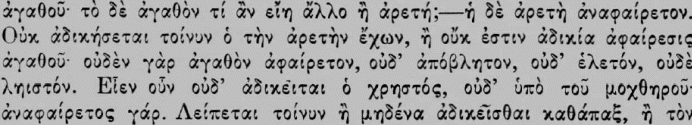 carried this fault of his prototype much farther. Dionysius the Areopagite, De Divinis Nominibus, is also strongly affected with it. Even in the fragments of the Eleatic Melissus we find clear instances of such subtle argumentation (especially § § 2-5 in Brandis's Comment. Eleat.). His method with concepts resembles blows given for the sake of appearance, which never hit the mark; these concepts never touch the reality from which they have their content, but, floating in the atmosphere of abstract universality, pass lightly over it. A further real specimen of such subtle argumentation is the little book De Diis et Mundo of the philosopher Sallust, especially chaps. 7, 12, and 17. A real gem of philosophical subtle argumentation, passing into decided sophistication, is the following reasoning of the Platonist Maximus Tyrius, which I will quote, as it is short. "Every injustice is the taking away of a good thing; there is no good thing other than virtue. Virtue, however, cannot be taken away, therefore it is not possible for the virtuous to suffer injustice from the wicked. It remains either that no injustice at all can be suffered, or that the wicked endures it from the wicked. But the wicked person possesses no good at all, for only virtue is such a good; therefore no good can be taken from him. Thus he also cannot suffer any injustice; hence injustice is an impossible thing." The original, which through repetitions is less concise, runs as follows: