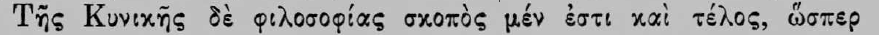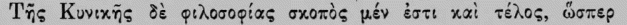 Therefore the ethics of the Cynics also adopted this aim of the happiest life, as is expressly testified by the Emperor Julian (Oratio 6):
