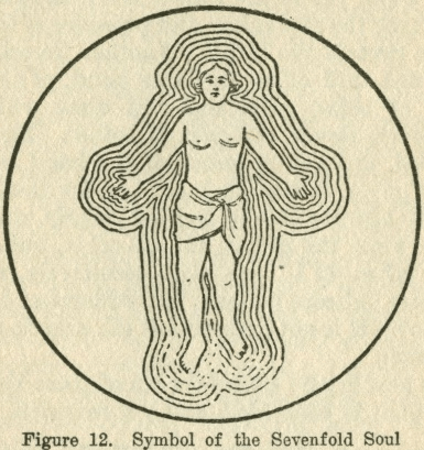 PART 9: THE SEVENFOLD SOUL OF MAN The Soul Is One in Essence, Yet Wrapped in a Sevenfold Veil. Veils Which Conceal, but Yet Reveal. The Elemental Soul. The Pattern of Form. The Etheric Double. The So-called Astral Body. The "Ghost." The Mineral Soul. The Spirit of the Chemical Processes in the Laboratory of the Body. The Plant Soul. The Spirit of the Vegetable Processes of Growth in the Body. The Animal Soul., The Spirit of the Animal Functions of the Body. The Truth About the Animal Passions and the Physical Processes. The Human Soul. The Spirit of Intellectual Activity and Reasoning Processes. A Plane of Great Trials and Struggles. The Soul of the Demi-Gods. The Spirit of the Altruistic Emotions and Activities, and of Cosmic Consciousness. The Higher Planes of the Soul. The Soul of the Gods. The Spirit of the Divine Faculties of the Soul. Summary of the Spiritual Evolution from Element to God-hood. In the Secret Doctrine of the Rosicrucians, we find the following Seventh Aphorism: The Seventh Aphorism 7. The Soul of Man is Sevenfold, yet but One in essence; Man's Spiritual Unfoldment has as its end the Discovery of Himself beneath the Sevenfold Veil. In this Seventh Aphorism of Creation, the Rosicrucian is directed to apply his attention to the concept of the Sevenfold Soul—One in essence—of Man; which in the figurative language of the mystic constitutes the seven veils which conceal from (yet reveal to) Man his real Self. This concept is represented by the Rosicrucians by means of the symbol of the figure of a man surrounded by seven outlined shapes—the man, himself in his essence, is represented by the blank space disclosed by the inmost outline, and each one of the "concealing but revealing veils" is represented by an outlined figure, each being but one of the series of seven. The series of outlines, be it noted, is enclosed in the circle representing the Infinite Unmanifest. The Symbol is interpreted as follows: (1) The Infinite Unmanifest manifests itself in the Elemental Soul; (2) the Elemental Soul takes upon itself the outward form of Mineral Substance; (3) The Mineral Soul evolves from itself the Plant Soul; (4) the Plant Soul evolves from itself the Animal Soul; (5) the Animal Soul evolves from itself the Human Soul; (6) the Human Soul unfolds into the Soul of the Demi-Gods; (7) the Soul of the Demi-Gods unfolds into the Soul of the Gods; and finally, the Soul of the Gods once more is resolved into Pure Spirit, which is represented by the blank space at the centre of the symbol. This statement will be more clearly apprehended by those who have carefully studied the preceding chapters conveying instruction concerning the Seven Planes of Consciousness, and much of the information contained in those chapters is to be taken into consideration in the study of the present chapter. Figure 12. Symbol of the Sevenfold Soul It will be noted that while these Seven Veils serve to conceal the Real Self—in the sense of imposing limitations and shape to it, yet at the same time it reveals the presence of Spirit by means of its outlines. The ancient teachers were wont to illustrate this concealing-revealment by means of a bit of thin gauzy drapery suspended across the space of an open door or open window into which the breeze is blowing. The drapery covers (and thus conceals) the moving wind, yet at the same time it shows a form representing the movement and presence of the wind, and thus reveals the latter. Another favorite illustration was that of an invisible hand, of itself impossible of being perceived, but upon which was placed seven gloves, one over the other. The gloves were filled, and the presence of the hand revealed; but each glove, in turn, is mistaken for the hand itself. The hand is able to feel but faintly, and to act clumsily when the gloves are all on it, but as each glove is taken off it feels more sensitively, and performs more delicate actions; but without at least one of the gloves it is not apparent at all, even to the eyes of its owner. Let us now briefly consider each of these Veils with which Spirit is concealed, and yet revealed. I. The Elemental Soul There is only one REAL Soul, of course; and when the Rosicrucians speak of "The Elemental Soul" they mean simply the Soul clad in the garments of elemental substance—covered with the veil of elemental substance, which while concealing its real nature yet serves to reveal it in manifestation. Following the terms of the symbol, it may be said that the Infinite Unmanifest involves itself first in the garment of Elemental Substance, or wraps itself in the veil thereof. Elemental Substance, in the sense in which the term is used by the Rosicrucians in this connection, is a very subtle, tenuous form of substance—a form of substance which may be regarded as the "ancestor" of the most subtle form of matter known to science today. It lies far back of the plane of the electrons, ions, or corpuscles of which matter (as commonly known) is composed. The Elemental Soul, clad in the garments of Elemental Matter is the pattern upon which the ordinary physical body is built. It is the "ghost" of the physical body, and persists after the disintegration of the latter. The intelligence or consciousness manifesting in this garment of substance is quite simple and elementary, and performs merely the office of providing and sustaining a pattern or form upon which the ordinary physical body is built. This Elemental Soul, embodied in elemental substance as stated, is that Something which to the race has been known as the "ghost," "spirit" (in this case the term "spirit" is grossly misused and inappropriate), ethereal body, "fluidic body," "double," "wraith," "doppelganger," etc. It has sometimes been called "the astral body," but this is a mistake, for what the occultists have long known as the true "astral body" is something very different. This Elementary Soul survives the dissolution of the physical body of the individual to wh