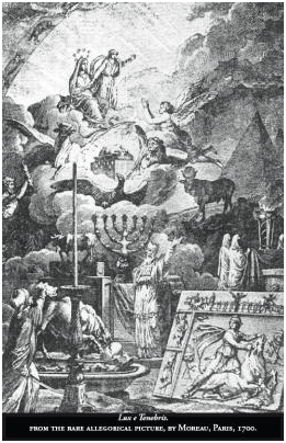 Cagliostro Received at a Lodge, ‘Drawn by a Brother Mason, a witness of the scene.’ _______________ Notes: 1. Aiwass was not Crowley’s only contact. There is considerable discussion in UFOlogy of LAM, the being Crowley sketched that so closely resembled later UFO-related beings described in modern close encounter cases. His encounter, in 1896, with two “little men” in the Swiss Alps was mentioned in Jacques Vallee’s Passport to Magonia catalogue of close encounter cases. Crowley’s “magical mountain” -- Mt. Mealfuorvonie near Loch Ness in Scotland -- is said to be a UFOnaut base. 2. Charles Wyclifie Goodwin’s translation of the ancient papyrus was published in 1852 as “Fragment of Greco-Egyptian Work Upon Magic.” Wallis-Budge reprinted it at the turn of the twentieth century in Egyptian Magic, and the Golden Dawn began using it as the “Bornless One” ritual shortly before. The Greek original was recently reprinted in the outstanding definitive edition of Book Four edited by Hymenaeus Beta. Crowley certainly worked on the ritual for a number of years, terming it “…the most helpful and exalted of all magical instructions” in his autobiography. Crowley approached the matter imperfectly (his own assessment) in The Equinox Volume I Number VIII. His perfected version, Liber Samekh, Theurgia Goetia Summa (Congressus Cum Daemone) Sub Figura DCCC was presented to one of his key students at the Abbey of Thelema in1921. It remains an instructional document of the A. A. to the present day, and, as such, may rest safely upon its stand-alone great merit. 3. “The research community has consistently failed to address the real issues posed by flying saucers, which relate not to propulsion systems, aerodynamics and the like, but to the human psyche and the magical currents that inform it.” -- Alec Hidell in Chronicles of the Grey Lodge. Note: The “True Name” of this being at the beginning is given, in some traditional sources, as “Paphro Osorronophris” and by Crowley as “Ptah-Apo-Phrasz-Ra”, the latter having the cipher value of Crowley’s “contacts” AMALANTRAH & ABULDIZ together. If one adds the value of the traditional spelling to Crowley’s alternative, or 158 + 217 we get 375, the exact value of the Name the being gives at the other end of the ritual, “THE HEART GIRT WITH A SERPENT.” |