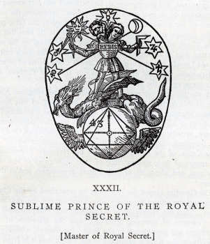 XXXII SUBLIME PRINCE OF THE ROYAL SECRET. [Master of Royal Secret.] THE Occult Science of the Ancient Magi was concealed under the shadows of the Ancient Mysteries: it was imperfectly revealed or rather disfigured by the Gnostics: it is guessed at under the obscurities that cover the pretended crimes of the Templars; and it is found enveloped in enigmas that seem impenetrable, in the Rites of the Highest Masonry. Magism was the Science of Abraham and Orpheus, of Confucius and Zoroaster. It was the dogmas of this Science that were engraven on the tables of stone by Hanoch and Trismegistus. Moses purified and re-veiled them, for that is the meaning of the word reveal. He covered them with a new veil, when he made of the Holy Kabalah the exclusive heritage of the people of Israel, and the inviolable Secret of its priests. The Mysteries of Thebes and Eleusis preserved among the nations some symbols of it, already altered, and the mysterious key whereof was lost among the instruments of an ever-growing superstition. Jerusalem, the murderess of her prophets, and so often prostituted to the false gods of the Syrians and Babylonians, had at length in its turn lost the Holy Word, when a Prophet announced to the Magi by the consecrated Star of Initiation, came to rend asunder the worn veil of the old Temple, in order to give the Church a new tissue of legends and symbols, that still and ever conceals from the Profane, and ever preserves to the Elect the same truths. It was the remembrance of this scientific and religious Absolute, of this doctrine that is summed up in a word, of this Word, in fine, alternately lost and found again, that was transmitted to the Elect of all the Ancient Initiations: it was this same remembrance, preserved, or perhaps profaned in the celebrated Order of the Templars, that became for all the secret associations, of the Rose-Croix, of the Illuminati, and of the Hermetic Freemasons, the reason of their strange rites, of their signs more or less conventional, and, above all, of their mutual devotedness and of their power. The Gnostics caused the Gnosis to be proscribed by the Christians, and the official Sanctuary was closed against the high initiation. Thus the Hierarchy of Knowledge was compromitted by the violences of usurping ignorance, and the disorders of the Sanctuary are reproduced in the State; for always, willingly or unwillingly, the King is sustained by the Priest, and it is from the eternal Sanctuary of the Divine instruction that the Powers of the Earth, to insure themselves durability, must receive their consecration and their force. The Hermetic Science of the early Christian ages, cultivated also by Geber, Alfarabius, and others of the Arabs, studied by the Chiefs of the Templars, and embodied in certain symbols of the higher Degrees of Freemasonry, may be accurately defined as the Kabalah in active realization, or the Magic of Works. It has three analogous Degrees, religious, philosophical, and physical realization. Its religious realization is the durable foundation of the true Empire and the true Priesthood that rule in the realm of human intellect: its philosophical realization is the establishment of an absolute Doctrine, known in all times as the "HOLY Doctrine," and of which PLUTARCH, in the Treatise "de Iside et Osiride," speaks at large but mysteriously; and of a Hierarchical instruction to secure the uninterrupted succession of Adepts among the Initiates: its physical realization is the discovery and application, in the Microcosm, or Little World, of the creative law that incessantly peoples the great Universe. Measure a corner of the Creation, and multiply that space in proportional progression, and the entire Infinite will multiply its circles filled with universes, which will pass in proportional segments between the ideal and elongating branches of your Compass. Now suppose that from any point whatever of the Infinite above you a hand holds another Compass or a Square, the lines of the Celestial triangle will necessarily meet those of the Compass of Science, to form the Mysterious Star of Solomon. All hypotheses scientifically probable are the last gleams of the twilight of knowledge, or its last shadows. Faith begins where Reason sinks exhausted. Beyond the human Reason is the Divine Reason, to our feebleness the great Absurdity, the Infinite Absurd, which confounds us and which we believe. For the Master, the Compass of Faith is above the Square of Reason; but both rest upon the Holy Scriptures and combine to form the Blazing Star of Truth. All eyes do not see alike. Even the visible creation is not, for all who look upon it, of one form and one color. Our brain is a book printed within and without, and the two writings are, with all men, more or less confused. The primary tradition of the single revelation has been preserved under the name of the "Kabalah," by the Priesthood of Israel. The Kabalistic doctrine, which was also the dogma of the Magi and of Hermes, is contained in the Sepher Yetsairah, the Sohar, and the Talmud. According to that doctrine, the Absolute is the Being, in which The Word Is, the Word that is the utterance and expression of being and life. Magic is that which it is; it is by itself, like the mathematics; for it is the exact and absolute science of Nature and its laws. Magic is the science of the Ancient Magi: and the Christian religion, which has imposed silence on the lying oracles, and put an end to the prestiges of the false Gods, itself reveres those Magi who came from the East, guided by a Star, to adore the Saviour of the world in His cradle. Tradition also gives these Magi the title of "Kings;" because initiation into Magism constitutes a genuine royalty; and because the grand art of the Magi is styled by all the Adepts, "The Royal Art," or the Holy Realm or Empire, Sanctum Regnum. The Star which guided them is that same Blazing Star, the image whereof we find in all initiations. To the Alchemists it is the