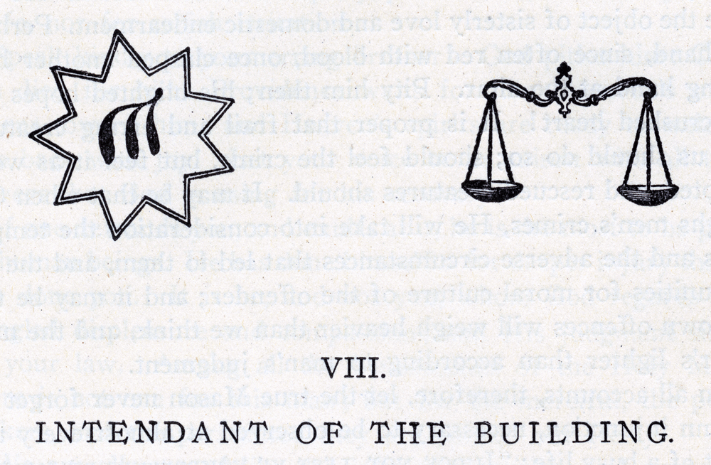 VIII. INTENDANT OF THE BUILDING. IN this Degree you have been taught the important lesson, that none are entitled to advance in the Ancient and Accepted Scottish Rite, who have not by study and application made themselves familiar with Masonic learning and jurisprudence. The Degrees of this Rite are not for those who are content with the mere work and ceremonies, and do not seek to explore the mines of wisdom that lie buried beneath the surface. You still advance toward the Light, toward that star, blazing in the distance, which is an emblem of the Divine Truth, given by God to the first men, and preserved amid all the vicissitudes of ages in the traditions and teachings of Masonry. How far you will advance, depends upon yourself alone. Here, as everywhere in the world, Darkness struggles with Light, and clouds and shadows intervene between you and the Truth. When you shall have become imbued with the morality of Masonry, with which you yet are, and for some time will be exclusively occupied,--when you shall have learned to practice all the virtues which it inculcates; when they become familiar to you as your Household Gods; then will you be prepared to receive its lofty philosophical instruction, and to scale the heights upon whose summit Light and Truth sit enthroned. Step by step men must advance toward Perfection; and each Masonic Degree is meant to be one of those steps. Each is a development of a particular duty; and in the present you are taught charity and benevolence; to be to your brethren an example of virtue; to correct your own faults; and to endeavor to correct those of your brethren. Here, as in all the Degrees, you meet with the emblems and the names of Deity, the true knowledge of whose character and attributes it has ever been a chief object of Masonry to perpetuate. To appreciate His infinite greatness and goodness, to rely implicitly upon His Providence, to revere and venerate Him as the Supreme Architect, Creator, and Legislator of the universe, is the first of Masonic duties. The Battery of this Degree, and the five circuits which you made around the Lodge, allude to the five points of fellowship, and are intended to recall them vividly to your mind. To go upon a brother's errand or to his relief, even barefoot and upon flinty ground; to remember him in your supplications to the Deity; to clasp him to your heart, and protect him against malice and evil-speaking; to uphold him when about to stumble and fall; and to give him prudent, honest, and friendly counsel, are duties plainly written upon the pages of God's great code of law, and first among the ordinances of Masonry. The first sign of the Degree is expressive of the diffidence and humility with which we inquire into the nature and attributes of the Deity; the second, of the profound awe and reverence with which we contemplate His glories; and the third, of the sorrow with which we reflect upon our insufficient observance of our duties, and our imperfect compliance with His statutes. The distinguishing property of man is to search for and follow after truth. Therefore, when relaxed from our necessary cares and concerns, we then covet to see, to hear, and to learn somewhat; and we esteem knowledge of things, either obscure or wonderful, to be the indispensable means of living happily. Truth, Simplicity, and Candor are most agreeable to the nature of mankind. Whatever is virtuous consists either in Sagacity, and the perception of Truth; or in the preservation of Human Society, by giving to every man his due, and observing the faith of contracts; or in the greatness and firmness of an elevated and unsubdued mind; or in observing order and regularity in all our words and in all our actions; in which consist Moderation and Temperance. Masonry has in all times religiously preserved that enlightened faith from which flow sublime Devotedness, the sentiment of Fraternity fruitful of good works, the spirit of indulgence and peace, of sweet hopes and effectual consolations; and inflexibility in the accomplishment of the most painful and arduous duties. It has always propagated it with ardor and perseverance; and therefore it labors at the present day more zealously than ever. Scarcely a Masonic discourse is pronounced, that does not demonstrate the necessity and advantages of this faith, and especially recall the two constitutive principles of religion, that make all religion,--love of God, and love of neighbor. Masons carry these principles into the bosoms of their families and of society. While the Sectarians of former times enfeebled the religious spirit, Masonry, forming one great People over the whole globe, and march under the great banner of Charity and Benevolence, preserves feeling, strengthens it, extends it in its purity and simplicity, as it has always existed in the depths of the human heart, as it existed even under the dominion of the most ancient forms of worship, but where gross and debasing superstitions forbade its recognition. A Masonic Lodge should resemble a bee-hive, in which all the members work together with ardor for the common good. Masonry is not made for cold souls and narrow minds, that do not comprehend its lofty mission and sublime apostolate. Here the anathema against lukewarm souls applies. To comfort misfortune, to popularize knowledge, to teach whatever is true and pure in religion and philosophy, to accustom men to respect order and the proprieties of life, to point out the way to genuine happiness, to prepare for that fortunate period, when all the factions of the Human Family, united by the bonds of Toleration and Fraternity, shall be but one household,--these are labors that may well excite zeal and even enthusiasm. We do not now enlarge upon or elaborate these ideas. We but utter them to you briefly, as hints, upon which you may at your leisure reflect. Hereafter, if you continue to advance, they will be unfolded, explained, and developed. Masonry utters no impracticable and extrava