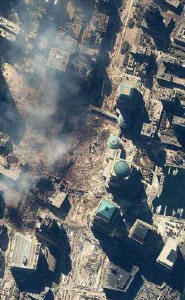 In this picture, the top of the picture is south and the right side is west. The ruined shell in the lower left is WTC building 6, and lower left of that is WTC 7, which was leveled by forces not explained. Picture cached from http://www.eionews.com before it was removed. Instead, the satellite pictures show the WTC ruins like an ash pit ( http://eionews.addr.com/images/wtc/numbersixafter_closeup.jpg or http://serendipity.magnet.ch/wot/psyopnews2/numbersixafter_closeup.jpg ). I am told by a friend that a man named Dr. Robert Schuller was on television telling about his trip to the ruins. He announced in the interview that there was not a single block of concrete in that rubble. From the original 425,000 cubic yards of concrete that went into the building, all was dust. How did that happen? I have just one other point I need help with — the steel columns in the center. When the platters fell, those quarter-mile high central steel columns (at least from the ground to the fire) should have been left standing naked and unsupported in the air, and then they should have fallen intact or in sections to the ground below, clobbering buildings hundreds of feet from the WTC site like giant trees falling in the forest. But I haven't seen any pictures showing those columns standing, falling, or lying on the ground. Nor have I heard of damage caused by them. Now I know those terrorists must have been much better at these things than I am. I would take one look at their kamikaze plans with commercial jets and I would reject it as — spectacular maybe, but not significantly damaging. The WTC was not even a strategic military target. But if I were given the assignment of a terrorist hijacker, I would try to hit the towers low in the supports to knock the towers down, maybe trapping the workers with the fire and burning the towers from the ground up, just as the people in the top stories were trapped. Even the Japanese kamikaze pilots aimed for the water line. But you see, those terrorists were so sure the building would magically collapse that way, the pilot who hit the north tower chose a spot just 20 floors from the top ( http://abcnews.go.com/sections/us/DailyNews/worldtrade010911.html or http://www.public-action.com/911/jmcm/ABCNews ). And the kamikaze for south tower was only slightly lower — despite a relatively open skyline down to 25 or 30 stories ( http://a188.g.akamaitech.net/f/188/920/15m/www.washingtonpost.com/wp-srv/nation/graphics/rubble_ny091101.htm or http://public-action.com/911/jmcm/wtcgeog ). The terrorists apparently predicted the whole scenario — the fuel fire, the slow weakening of the structure, and the horrific collapse of the building — phenomena that the architects and the NY civil engineering approval committees never dreamed of. Even as you righteously hate those men, you have to admire them for their genius. Few officials or engineers have been surprised by this turn of events — apparently everyone certified it for airplane collisions, but almost no one was surprised when both collisions caused utter catastrophes in both towers. In fact, their stutters and mumbles and circumlocutions would make a politician blush: "Eventually, the loss of strength and stiffness of the materials resulting from the fire, combined with the initial impact damage, would have caused a failure of the truss system supporting a floor, or the remaining perimeter columns, or even the internal core, or some combination." ( http://www.civil.usyd.edu.au/wtc.htm#why or http://www.public-action.com/911/jmcm/usyd/wtc.htm#why ) In a hundred years of tall city buildings, this kind of collapse has never happened before. Never. It was not predicted by any of the experts involved when the WTC towers were built. But now that it has happened, everybody understands it perfectly and nobody is surprised. Is this civil engineering in the Third Millennium — a galloping case of perfect hindsight? Scientific American, prestigious journal of cutting edge science, remarked: Despite the expert panel's preliminary musings on the failure mechanisms responsible for the twin towers' fall, the definitive cause has yet to be determined. Reportedly, the National Science Foundation has funded eight research projects to probe the WTC catastrophe. The American Society of Civil Engineers is sponsoring several studies of the site. Meanwhile the Structural Engineering Institute of the American Society of Structural Engineers has established an investigative team to analyze the disaster and learn from the failure ( http://www.sciam.com/explorations/2001/100901wtc or http://www.public-action.com/911/jmcm/sciam ). Amazing: At least ten independent professional studies for an incident every professional seems already to understand. Notwithstanding the apparent lack of answers and all these studies not yet done, the very next paragraph is headed, "How the Towers Fell," and the reader is treated to a shotgun assortment of speculations, each delivered with the beard-stroking and pipe-puffing certainty that no explanation would ever be seriously challenged. I have found only one expert candidly admitting his surprise. This was Mark Loizeaux, president of Controlled Demolition, Inc. of Phoenix, MD: Observing the collapses on television news, Loizeaux says the 1,362-ft-tall south tower, which was hit at about the 60th floor, failed much as one would like (sic) fell a tree. That is what was expected, says Loizeaux. But the 1,368-ft-tall north tower, similarly hit but at about the 90th floor, "telescoped," says Loizeaux. It failed vertically, he adds, rather than falling over. "I don't have a clue," says Loizeaux, regarding the cause of the telescoping. ( http://www.civil.usyd.edu.au/wtc_enr.htm or http://www.public-action.com/911/jmcm/USYDENR ). There was one highly qualified engineer in New Mexico who thought the collapse could only happen with the help of demolition explosives, and he was foolish enough to make the statement publicly.