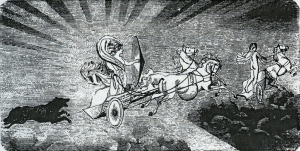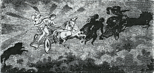 The new rulers, who called themselves Ases, i.e., pillars and supports of the world, did not like this state of things at all. So they began to create as Allfather willed that they should. They made the earth of Ymir’s body, the sea of his sweat, the hills of his bones, and the trees of his curly hair. Of his skull they made the firmament, and of his brain the clouds which float below. Then, out of the giant’s eyebrows the gods formed Midgard (Middlegarden), the dwelling-place of the children of men, who as yet unborn slept in the lap of time. Darkness reigned throughout space; only a few fiery sparks from Muspelheim wandered aimlessly through the air; the sun did not know her place, nor the moon his [1] course, nor did the stars know where they were to stand. But the gods collected the sparks, made them into stars and fastened them in the firmament. They created the chariot of the sun, harnessed to it the horse Arwaker (Early-waker), which was driven by the maiden Sol; she was rapidly followed by the shining moon drawn by the horse Alswider (All-swift), bridled and managed by the beautiful boy Mani. Mother Night talked lovingly to Mani as she preceded him on her dark horse Hrimfaxi (Frostmane), whilst her son Day followed her with his bright Skinfaxi (Shining-mane). Day Creatures of all sorts crept like maggots in and out of Ymir’s body and bones. The gods therefore consulted together as to what was best to be done, and they thought that their wisest course would be to change these creatures into a useful people. So they at once changed them into Dwarfs and Trolls, who were gifted with a wonderful knowledge of minerals and stones of all kinds, and an extraordinary power of working in metals. One class of dwarfs was of dark complexion, cunning and treacherous; the other was fair, good and useful to gods and men. Three mighty gods once left the place where the Thing or council was held; they were Odin, Hönir or Hahnir (the Bright One) and Lodur. While wandering over the face of the earth, which was green with grass and with the juicy leek, they found two human forms lying near the shore, Ask (the ash), and Embla (the alder), both of whom were without power or sense, motionless, colourless. Odin gave them souls; Honir, motion and the senses; and Lodur, blood and blooming complexions. From these two are descended all the numerous races of men. Night Allfather dwelt in the deep and willed, and what he willed came to pass. Then the ash Yggdrasil grew up, the tree of the universe, of time and of life. The boughs stretched out into heaven; its highest point, Lärad (peace-giver) overshadowed Walhalla, the hall of the heroes. Its three roots reached down to dark Hel, to Jotunheim the land of the Hrimthurses, and to Midgard the dwelling-place of the children of men. The World-tree was ever-green, for the fateful Norns sprinkled it daily with the water of life from the fountain of Urd which flowed in Midgard, But the goat Heidrun, from whom was obtained the mead that nourished the heroes, and the stag Eikthyrnir browsed upon the leaf-buds, and upon the bark of the tree, while the roots down below are gnawed by the dragon Nidhögg and innumerable worms : still the ash could not wither until the Last Battle should be fought, where life, time and the world were all to pass away. So the eagle sang its song of Creation and Destruction on the highest branch of the tree. The Ash Yggdrasil This is what a skald, a Northern bard, related to the warriors who were resting from the fatigue of fighting, by tables of mead. He and his comrades, intoxicated with the divine mead of enthusiasm, used to tell these stories to the listening people. The myths were founded on the belief of the Norse people regarding the creation of the world, gods and men, and as such we find them preserved in the Songs of the Edda. At the same time the catastrophe is hinted at by which, in the opinion of these races, the great world-drama was to end. It is true that many unlovely and even coarse ideas are to be found mixed up with the rest, and that they cannot be compared with the beautiful fancies of Hellenic poetry; but the drama as a whole is grand and philosophical, and had its birth in that heroic spirit which forced the Teutons and Northern Wikings out into their battles of life or death. We have also the idea of Allfather, the unquestionable original cause of all things, though he is scarcely more than mentioned in the poems. This idea came more prominently forward in later times, but could not grow to its full proportions, because the preaching of the Gospel soon afterwards did away with the old faith. Whilst struggling against the horrors of a northern climate and sending out armies into distant land, the Teutons fixed their eyes on certain aspects of nature, and could not rise to distinct conceptions of the Eternal. Still this idea lay originally at the foundation of the Northern religion, and the kindred Aryan race in India developed and exhibited it in a wonderful and poetical manner. Neither in the one case nor in the other, did the myths arise complete and perfect in the minds of these kindred people in the form in which we read them in the ancient documents. They needed a long time, a long period of development, before they appeared as regular myths or mythical tales. We must try to make clear to ourselves the process of the formation and development of the myth. Nations, like individuals, have their childhood, youth, prime and old age. In their childhood they cannot look upon the inexplicable facts and manifestations of the forces of nature, and on those of their own soul, otherwise than under certain forms. Nature, on which they feel themselves dependent, seems to them a Personality possessed of thought, will and perception. Nature is the Divinity they worship; she is the Self-existent Power of the Indian Aryans, the Eros of the Hellenes in their earliest home by the Acherusian Lake, and the Allfather who dwelt 