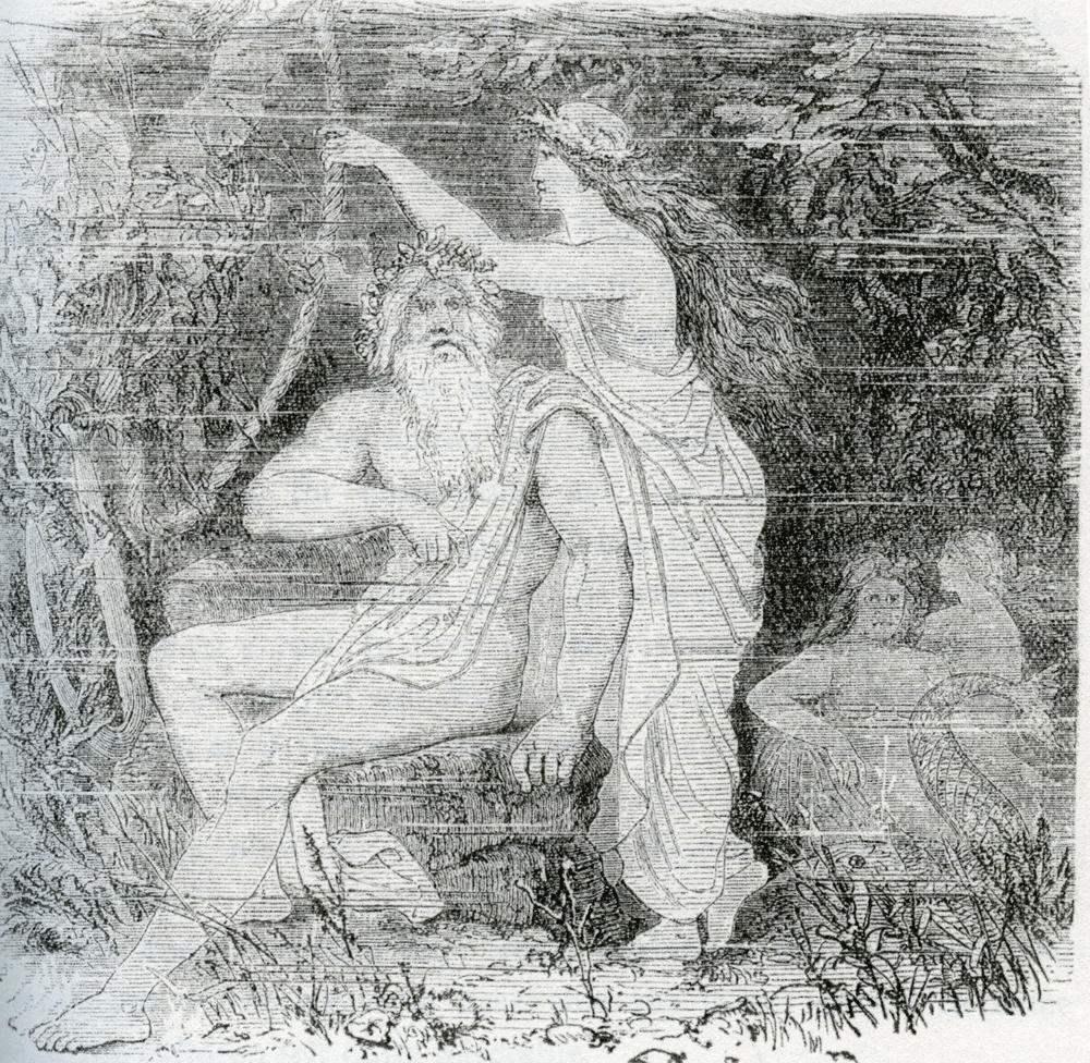The story of the “Old Man of the Sea” is perhaps a recollection of the Northern Ögir, who, if not the king was at least the highest and greatest of the water spirits. Ögir, i.e. the Terrible, like his brothers Kari, ruler of the air, and Logi, ruler of fire, was a son of the old giant Forniot. Judging from the etymology of the word, he seems to be identical with the Grecian Okeanos, but possessing a more distinct personality, for the Greeks probably only knew the ocean from the stories of Phoenician sailors, while the Northern skippers boldly faced the mighty sea and its terrors in their weak vessels, which they called dragons or snakes. Dreadful Ögir was married to Bar, who, like her husband, used to drag men down into the deep and bury them in the sand, or who, according to other accounts, received the souls of those who died at sea, as Hel did of those who died a “straw death” on land. They had nine daughters who afterwards became the mothers of Heimdal. The name of the Ögishelm, i.e. Helmet of Terror, comes from the King of the ocean. It was believed that the very sight of it filled the beholder with such terror that he would let his weapons fall as though he were paralyzed by magic art. The front of this helmet was adorned with a boar’s head which yawned openmouthed at the enemy. The Anglo-Saxons and Esthonians of the Baltic wore helmets of this sort, and the latter people believed that these head-pieces made the wearer either invisible or impervious to wounds. This reminds us of the dusk cap in the Nibelungen Lay, whilst the boar’s head puts us in mind of Freyer’s Gullinbursti. The Ögishelm, judging from the formation of the word and from its meaning, seems to have been identical with the Ögis shield of Zeus, for this was by no means a goat’s skin as people said later on, but was a weapon arousing feelings of terror. Zeus sometimes lent it to his son Apollo, who showed it to the enemy and made them fly in fear. The shield of Pallas Athene with the Medusa’s head had much the same effect. Ogir and Ran Ögir, the terrible king of the ocean, did not appear armed with the boar’s helmet in the northern poems, but he must have worn it in the old days, the records of which are lost. He was milder of aspect than of yore, and although of giant race, he lived in friendship with the Ases. He was also represented as sitting on a rock, playing on a harp or a shell. No sooner was Ögir’s music heard than the waves piled themselves mountain high, and flung themselves against each other with a wild roar, so that the earth trembled and the heavens threatened to split in twain. The vassals of Ögir were numerous, mermaids and sprits of all kinds were subject to him, and there are a great many interesting tales regarding them in every land. The stories of the magical music of the Necks are probably founded on the melodious sounds made by the water when falling over rocks or by the waves of the sea when confined within some cavern, such as Fingal’s cave, etc. Nixies also sought the love of man, for thus and thus alone could they obtain the object of their desire, a loving immortal soul. The tragic turn which these stories generally take, almost seems to show that the possession of a soul was not happiness. Fouqué’s “Undine” is one of the most beautiful of these tales. Although the water spirits had no souls, they yet were filled with a longing for redemption and resurrection. There is a Christian tale which is a good illustration of this idea. Two children were once playing upon the sea-shore. A merry Neck was seated on a rock in front of them surrounded by water, and as he sat, he played on his harp so cheerily that it seemed to the children as if the very waves were dancing to his tune. Then the elder boy called out to him jestingly: “Play on, merry sprite, play on; thou hast no hope of redemption or of resurrection.” “No hope!” wailed the Neck, beginning to play such sad music out of his sorrowful heart that the waves ceased to dance and the children felt quite miserable. They went home and told their father, who was a Christian priest, what had happened. He chid them for their forwardness, bade them at once return to the Neck and tell him that there was hope of redemption and resurrection for him, for the Saviour had said: “I am not come into the world to judge the world, but that the world through me might be saved.” The boys did as their father told them. They found the Neck still weeping bitterly. But when he heard the message of glad tidings, he smiled through his tears and touched the strings of his harp making them play mighty chords, and it seemed as though the heavenly hosts were singing to the music. “The Saviour did not come to judge the world, but that the world through Him might be saved.” In this simple legend we see the triumph of Christianity over heathenism. It is sad that this aspect of Christianity is not always recognised by those who are called upon to teach its principles. But Charlemagne’s Saxon war, the Inquisition, and other more recent events show how much the fundamental idea of its teaching has been misunderstood.