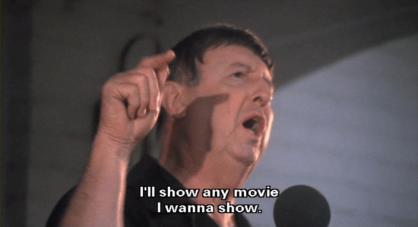 Fishpaw, I'm Jerry Haller from Channel 12 News. [Elmer Fishpaw] I'll show any movie I