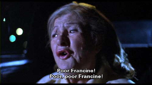 [Cuddles Kovinsky] Oh, Heintz, she's straight from the gutter! [Heintz] A sporting girl, I would imagine. [Cuddles Kovinsky] A fille de joie! [Heintz] It saddens me that you have to see anything this common, Madame. [Cuddles Kovinsky] Poor Francine! Poor, poor Francine! [TV Reporter] In other news, James Wemo ... accused of the August 9th bombing ... of the Maryland Censor Board Office ...
