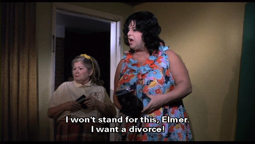 I won't stand for this, Elmer. I want a divorce!