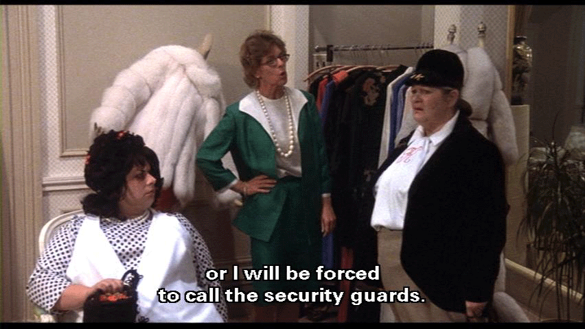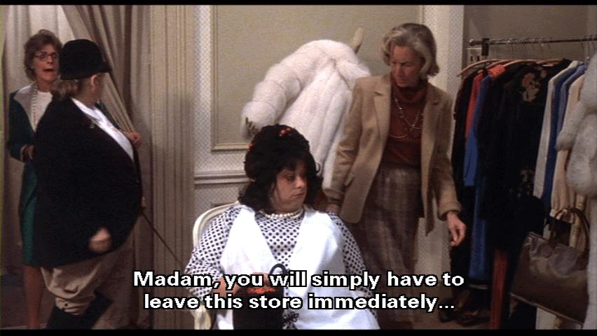 [Dexter Fishpaw] Ah, shoes ... [Boutique Saleslady] Madam, you will simply have to leave this store immediately ... or I will be forced to call the security guards. [Cuddles Kovinsky] You're really gauche, madam. A regular little cochon, and that means pig.