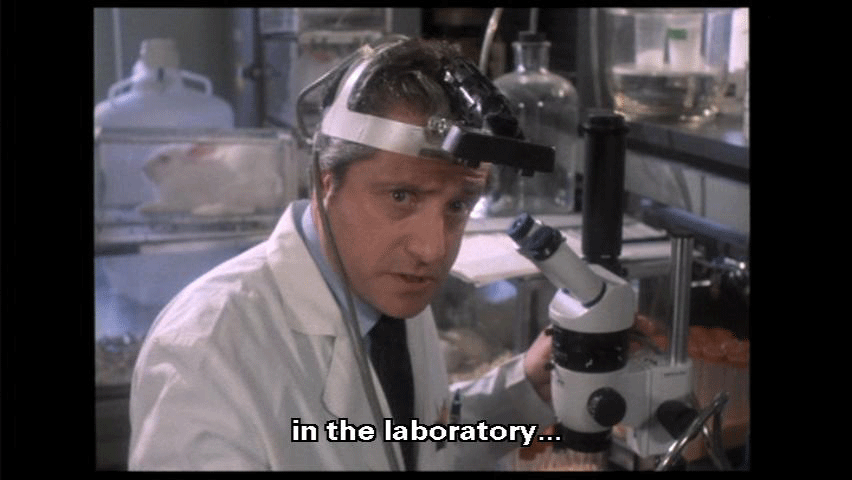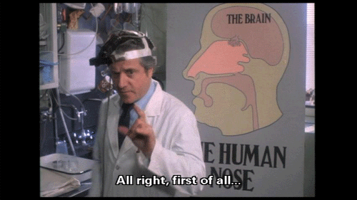 have unselfishly spent untold millions of dollars ... to develop this startling process. And I have been locked away for many years ... in the laboratory ... experimenting with this mind-boggling project. I would like to share with you some of my research. All right, first of all ... this ... is the nose.