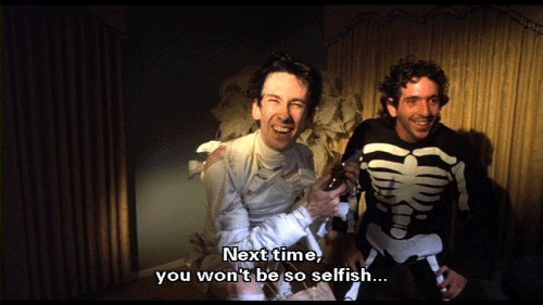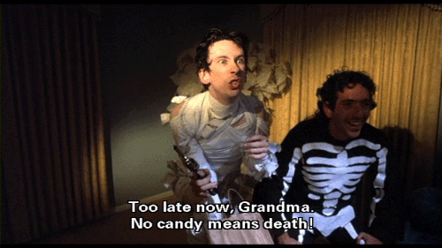 Kill her. [Bo-Bo Belsinger] Next time, you won't be so selfish ... and ignore little children on holidays! [La Rue] Maybe we have an apple or something. [Bo-Bo Belsinger] Too late now, Grandma. No candy means death!