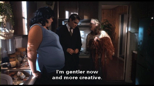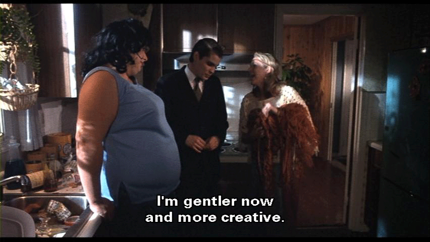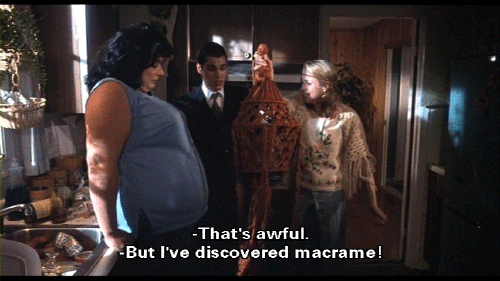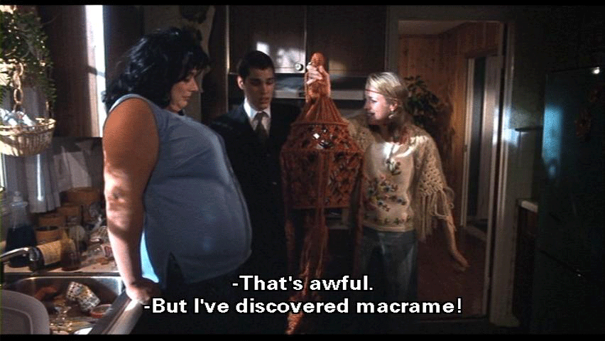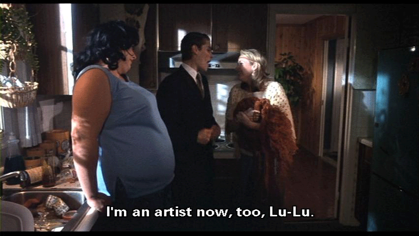 [Lu-Lu Fishpaw] Forgive me for being so awful, but I've changed. Bo-Bo's dead, and I've had a miscarriage. [Derek Fishpaw] That's awful. [Lu-Lu Fishpaw] But I've discovered macrame! It's helped me find myself. I'm gentler now and more creative. [Dexter Fishpaw] I'm an artist now, too, Lu-Lu. I'm off drugs and ready for a new beginning here at home. [Francine Fishpaw] Oh, you see, children?