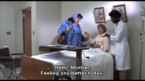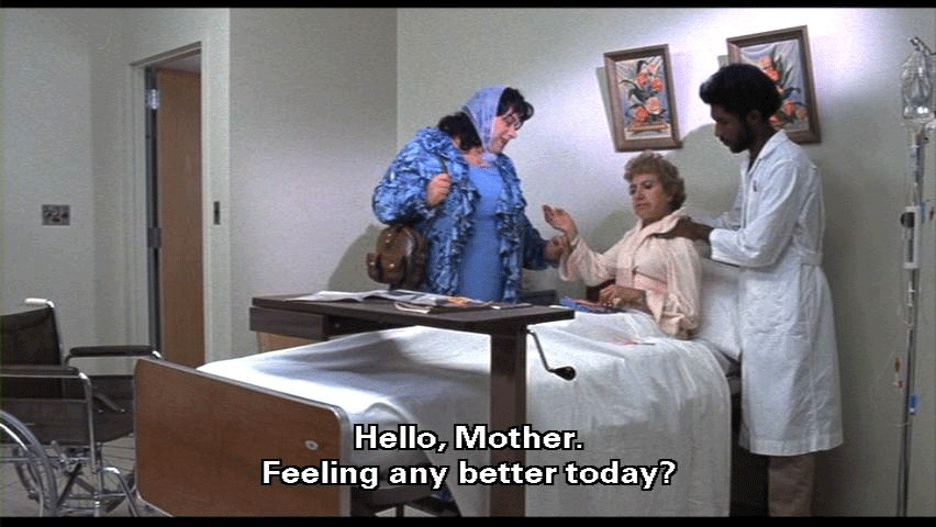 [Francine Fishpaw] Hello, Mother. Feeling any better today? [La Rue] How can I feel better with a drunken miser as a daughter? [Francine Fishpaw] Shut up, Mother! For forty-four years, I've tried to be a good daughter to you ... and all I've gotten in return is abuse.