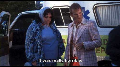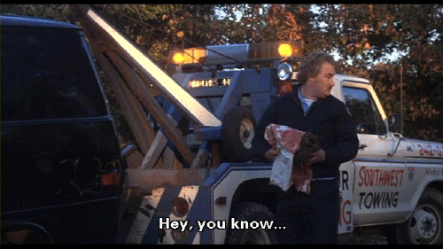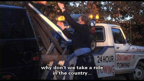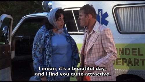 [Two Truck Driver] Excuse me. [Todd Tomorrow] It was really horrible. [Francine Fishpaw] It is. It's just too horrible. I can't look. [Todd Tomorrow] Hey, you know ... why don't we take a ride in the country ... and get away from all this mess? I mean, it's a beautiful day, and I find you quite attractive. [Francine Fishpaw] But I don't even know your name.