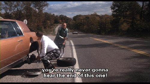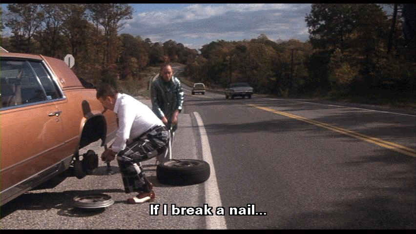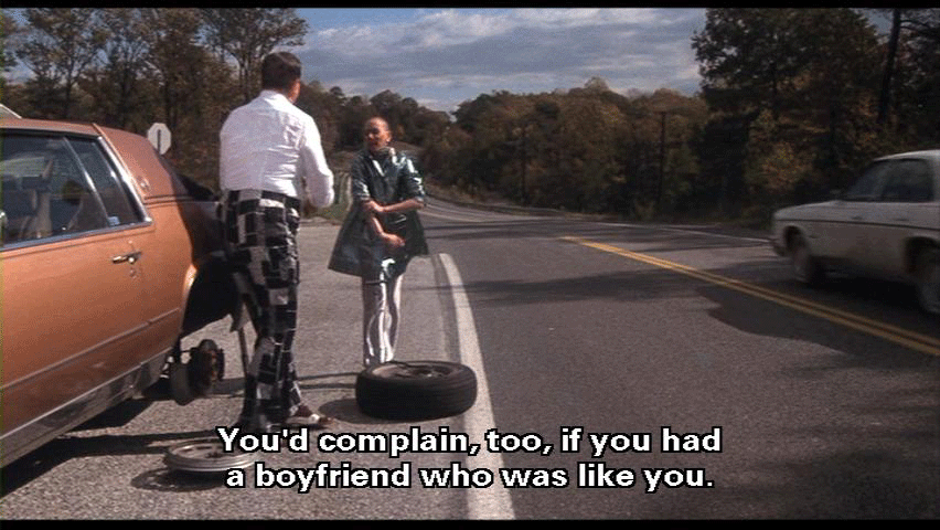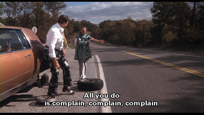 [Sandra Sullivan] If I break a nail ... you're really never gonna hear the end of this one! [Elmer Fishpaw] Listen, I'm gettin' sick and tired of all your complaining. All you know is complain, complain, complain. [Sandra Sullivan] Well, you'd complain, too, if you had a boyfriend who was like you. Why don't you get a decent car?