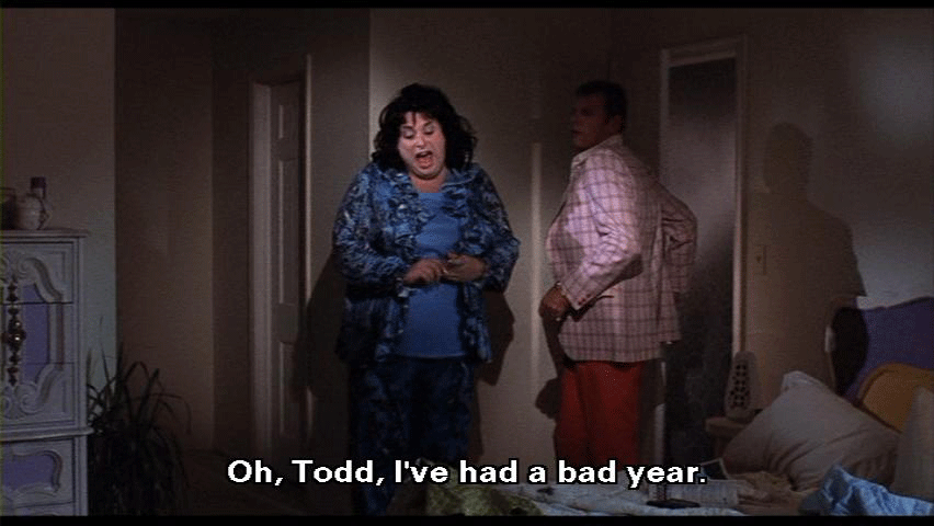 [Francine Fishpaw] Oh, Todd, I've had a bad year. Please don't be too harsh in your judgments. [Todd Tomorrow] Well, it's exquisite. Look at me. Read my lips. I love you. I love you. [Francine Fishpaw] I'm sorry I'm so nervous.