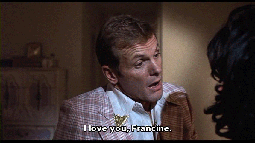 I love you, Francine. I love your little ankles and your little wrists. Your little breasts, your little belly. [Francine Fishpaw] Oh, Todd. Dare I say it? I love you, too, my darling. [Todd Tomorrow] Then let's make love, you sweet little thing.