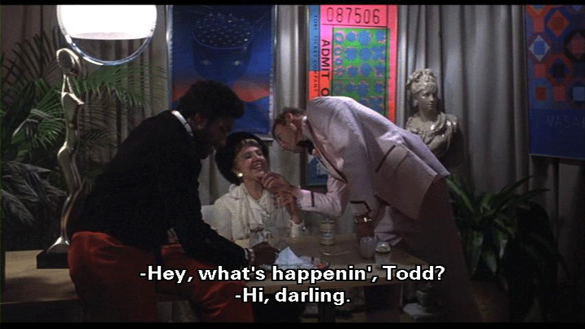 [Francine Fishpaw] OK, but hurry. I don't want to be late for Cuddles' party. [Flashlight] Hey, what's happenin', Todd? [La Rue] Hi, darling. [Todd Tomorrow] Right there. [Flashlight] How you doin', my man? [Todd Tomorrow] Not bad. [Flashlight] Here you go.