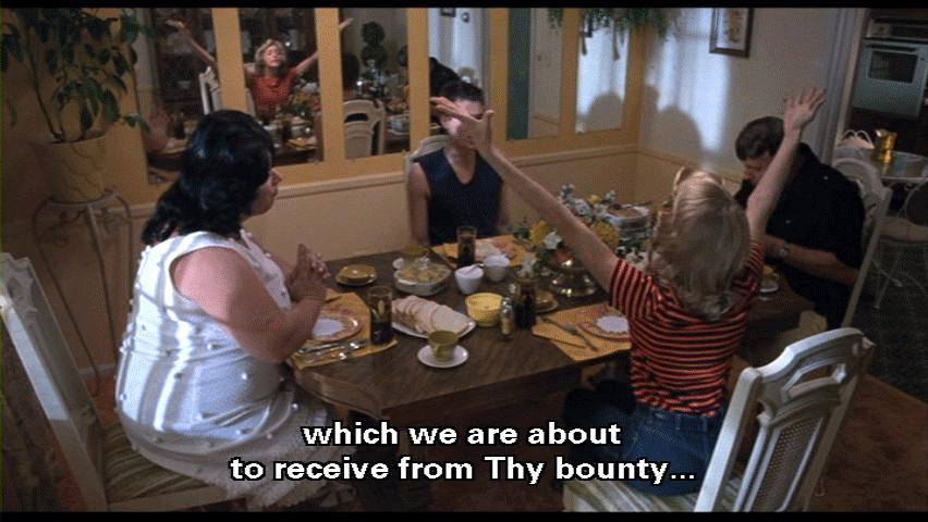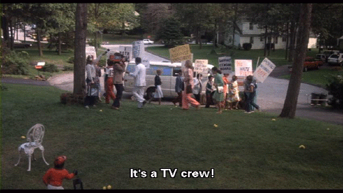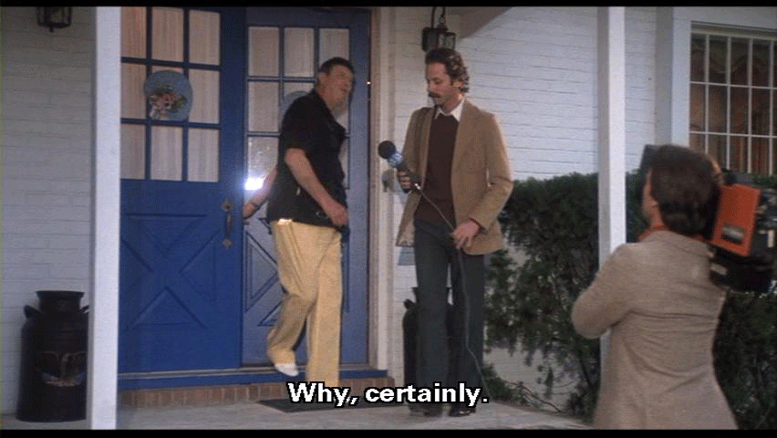 which we are about to receive from Thy bounty ... through Christ our Lord. Amen. [Doorbell rings] [Francine Fishpaw] Don't answer it! [Lu-Lu Fishpaw] It's a TV crew! [Elmer Fishpaw] I'll handle that. You all stay here. [Jerry Haller, Channel 12 News] Mr. Fishpaw, would you step out, please? [Elmer Fishpaw] Why, certainly.