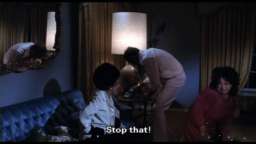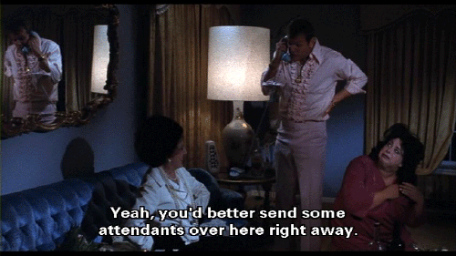 [Francine Fishpaw] [Making Ape Sounds] [Todd Tomorrow] I better call the mental hospital. [La Rue] Shut up. [Todd Tomorrow] Right. [La Rue] Stop faking it! [Todd Tomorrow] Happy Hills? This is 538 Wyman Way. Yeah, you'd better send some attendants over here right away. We got this thing, this big thing ... this woman's had a breakdown.