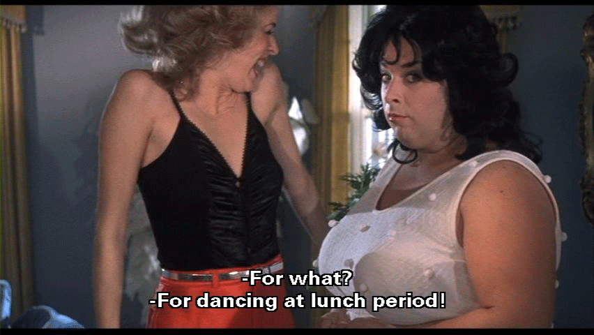 [Francine Fishpaw] That's a new garment, Lu-Lu. I can smell it. Have you been shoplifting again? [Lu-Lu Fishpaw] I bought it with money I saved. [Francine Fishpaw] What money? You don't have a job. [Lu-Lu Fishpaw] Boys at school give me money. [Francine Fishpaw] For what? [Lu-Lu Fishpaw] For dancing at lunch period! [Francine Fishpaw] You dance lewdly for the boys at lunch period?
