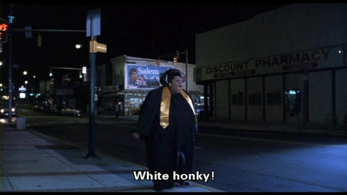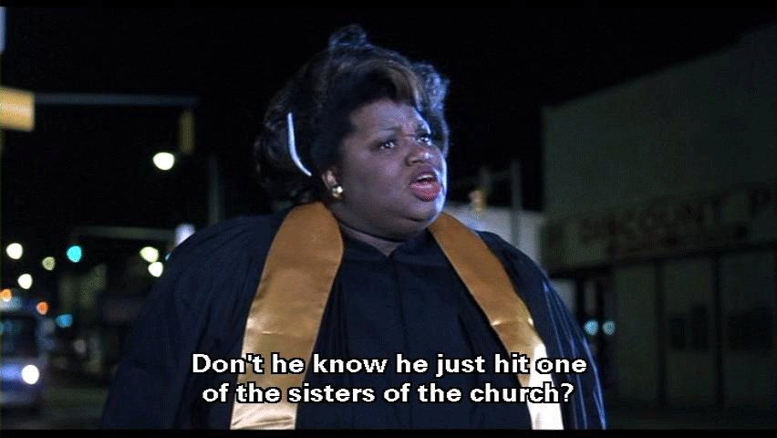 [Black Sister] White honky! You crazy cracker! What's wrong with these children of today? Don't he know he just hit one of the sisters of the church? I'm sick and tired of what these children are doing --