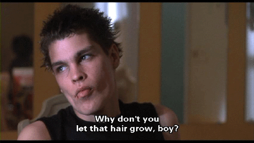 Why don't you let that hair grow, boy? You look like a fruit with that short hair. [Derek Fishpaw] Why don't you drop dead? [Elmer Fishpaw] You're just asking for it. How's my baby doing in school?