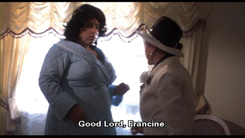You've put on another twenty pounds! [Cuddles Kovinsky] Au revoir, Heintz. [Heintz] Should I go to the Laundromat now, Madame, or wait for you? [Cuddles Kovinsky] You can go now, Heintz. I'll ... if I need you. [Heintz] As you wish, Madame. [Francine Fishpaw] Oh, it's Cuddles. [La Rue] Good Lord, Francine. Don't you know it's bad luck ...