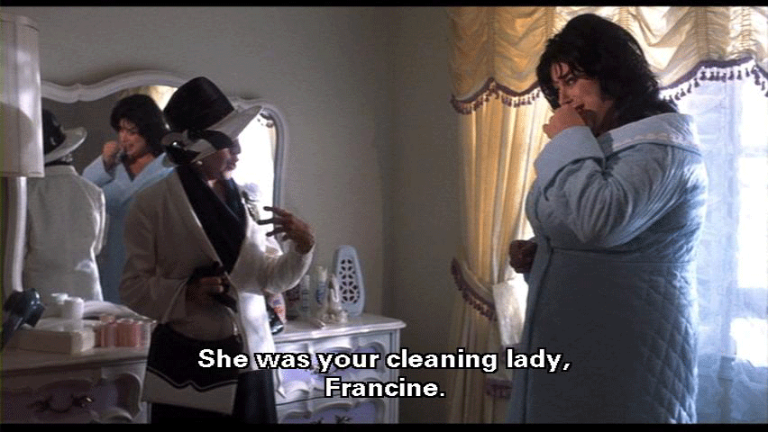 to let retarded people in your home? Call me a cab, this instant. [Francine Fishpaw] But, Mother, she's my best friend. [La Rue] Your best friend?! She was your cleaning lady, Francine. Are you that unpopular ... that you seek out the social company of your maid? [Francine Fishpaw] But she's not a maid anymore, Mother.