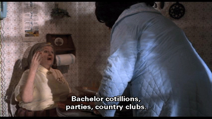 Bachelor cotillions, parties, country clubs. I've been on top of the world lately ... with my debutante party coming up. [Francine Fishpaw] Cuddles, you're too old to be a debutante. Just because you've inherited a lot of money ... doesn't mean that you're suddenly socially prominent. [Cuddles Kovinsky] I've already rented the hall, Francine. November the 10th.