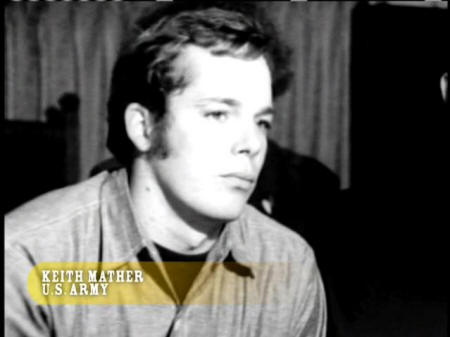 And at that point it really became crystal clear to me that something had changed here ... and that something very, very important was happening. QUESTIONER: How many people in the Army would you think feel the same way perhaps as you do ... are against the war? KEITH MATHER, U.S. ARMY: I really don't know how many, but I know how many I met, and that was a majority of the men that I met in the service were opposed, but really didn't know how to voice their opinion. NARRATOR: 1968 was the turning point. |