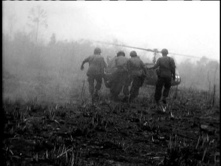 After the fighting ended, and the sun came up, and they carried me over to this guy who had shot me, and he was sitting up against the tree stump, and he was dead. He had three bullet holes up his chest and he had his AK laying across his lap, and the sergeant said, "here's this gook you killed; you did a good job." And I seen this guy, and he was about my age, and I started thinking, you know, "Why is he dead and I'm alive?" It was just a matter of pure luck. Then I started thinking, I wonder if he had a girlfriend, and how his mother is going to find out, and things like that. And when you just went through an experience of that nature, and you find out that it's all lies, and that they're just lying to the American people, and your silence means that you're part of keeping that lie going, I couldn't stop. I mean, I couldn't be silent. |