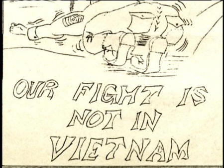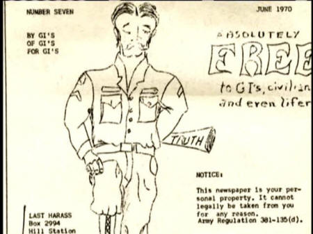 You're not allowed to have any copies of this inside the barracks. Go and turn this in immediately. That night, then, the paper went around in the barracks, everyone is reading it, two or three guys at a time, sitting around on a bed, around guys' beds and stuff like that, checking out this paper. LAST HARASS TRUTH LAST HARASS OUR FIGHT IS NOT IN VIETNAM |