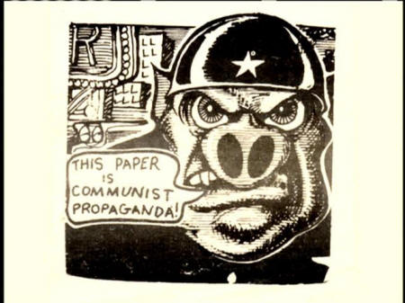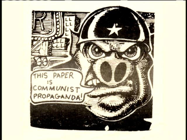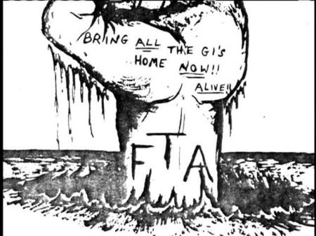THIS PAPER IS COMMUNIST PROPAGANDA! FTA NARRATOR: Despite the military's best efforts, the Underground Press became the lifeblood of the GI Movement. BRING ALL THE GI'S HOME NOW!! ALIVE!! FTA As the Army's own recruiting slogan, "Fun, Travel and Adventure" turned into the popular GI expression: FUCK THE ARMY. BRAGG BRIEFS: GI'S UNITED AGAINST THE WAR IN INDOCHINA |
