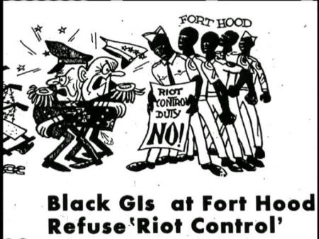 and about what was happening with the war. FORT HOOD NARRATOR: As the meeting stretched into the night, Fort Hood's commanding general showed up to talk to the GIs. ELDER HALIM GULLAHBEMI, U.S. ARMY: "You see, I'm just a two-star general -- let me go talk to my boss, and I'll have an answer for you in the morning." So we just relaxed, you know, went to sleep ... all of a sudden, crack up side the head. They cracked me upside the head, you know. What the hell is going on? MPs all around us, man. They came at us with bayonets. |
